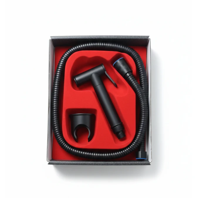 Le kit comprend une douchette ergonomique, un tuyau flexible résistant et un support mural pour un rangement pratique et ordonné. L’installation est simple et rapide, sans besoin d’outils professionnels.