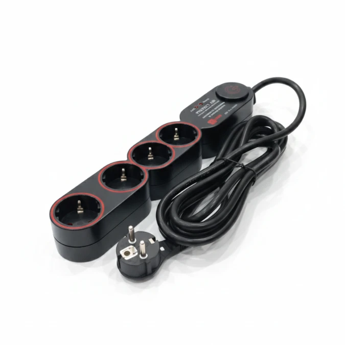 • 🛡️ حماية من زيادة التيار: يحمي الكمبيوتر، التلفاز، والأجهزة المنزلية من الصدمات الكهربائية.