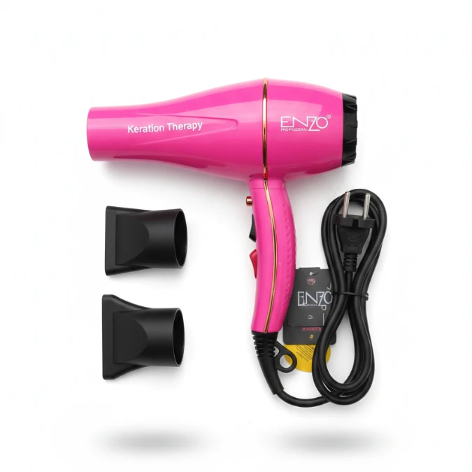 مجفف الشعر بالكيراتين ENZO EN-111 بقوة 1845 واط، يمنح شعرك نعومة ولمعان سريع. خفيف الوزن، مناسب لجميع أنواع الشعر، للاستخدام المنزلي أو في صالونات الحلاقة، مع أداء احترافي وثبات عالي.