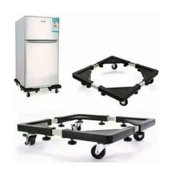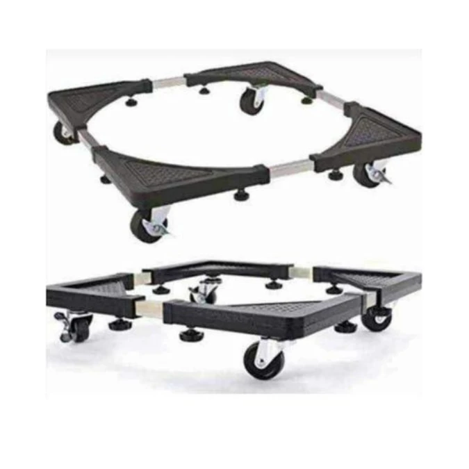 حامل ثلاجة قابل للتوسيع مع عجلات مزدوجة وفرامل، يتحمل حتى 800 كغ. مثالي لنقل الثلاجة والغسالة والمجمد بسهولة وأمان. تصميم متين، ارتفاع قابل للتعديل وسهل التركيب. مناسب لكل المنازل.